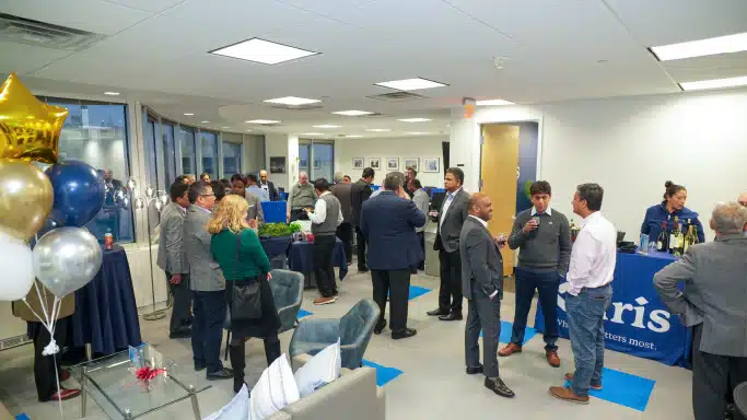 We officially launched the Jersey City office with a celebratory reception, complete with ribbon- and cake-cutting and champagne toast. Attendees enjoyed the festivities, stunning views of the river and cities, and included the office’s resident team of sales and delivery associates, executives from Iris’ Edison office, and well-wishing local clients and guests.
